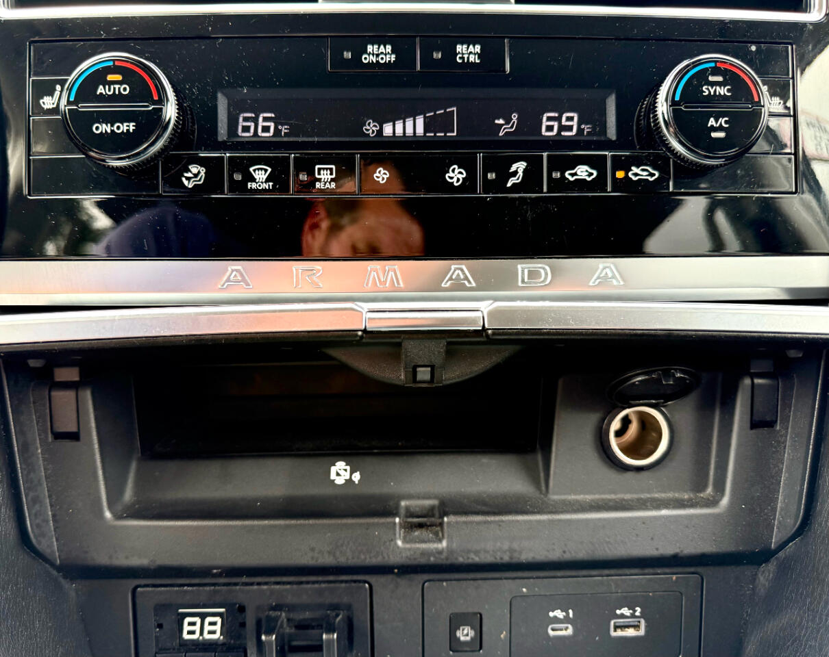 Hop into this sleek Gun Metallic 2023 Nissan Armada SV 4X4 and let the adventure begin! Cruise with confidence thanks to the 4WD/AWD system and locking differential, ensuring you can tackle any terrain with ease. Slip into the luxurious leather seats, adjustable to your perfect driving position with the power seats. Feel the chill melt away with the front heated seats and dual-zone climate control, creating the ideal cabin temperature for all passengers. The navigation aid will guide you to your destination while the backup camera helps you maneuver with precision. Stay connected on-the-go with handsfree wireless, Bluetooth, and satellite radio capabilities. With a Carfax report available, you can trust in the reliability and history of this impressive SUV. Whether you're running errands around town or embarking on a cross-country road trip, this Nissan Armada is ready to elevate your driving experience. Don't miss out on the opportunity to make this feature-packed vehicle yours today!