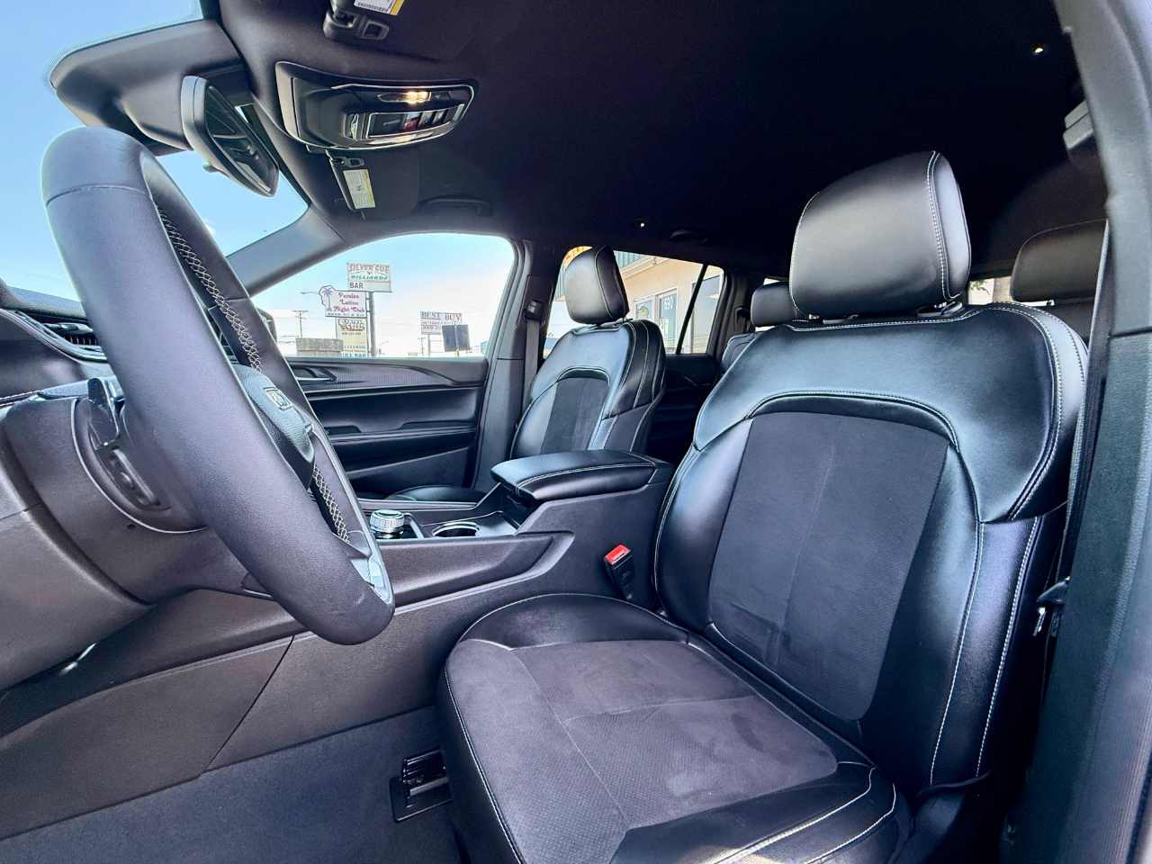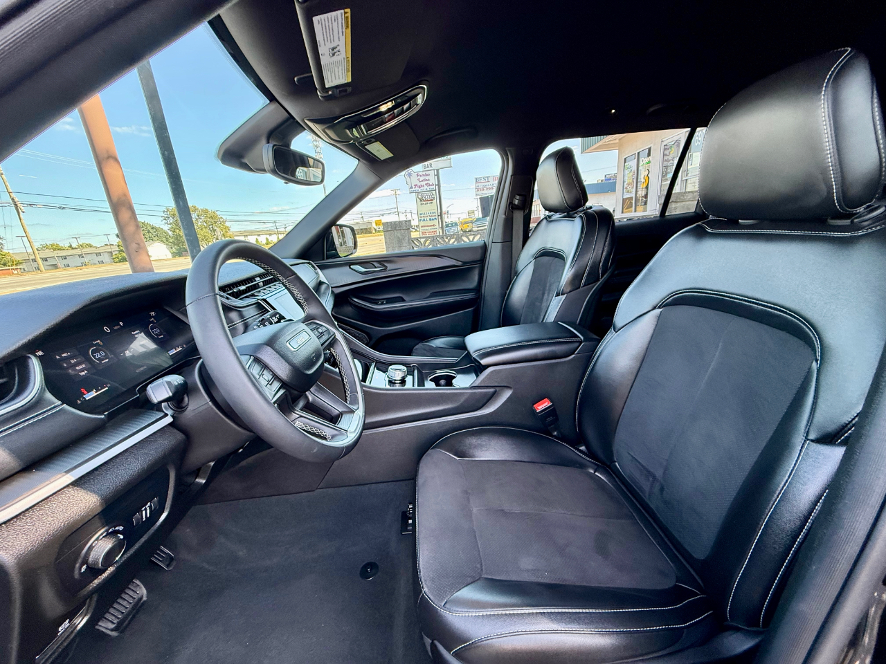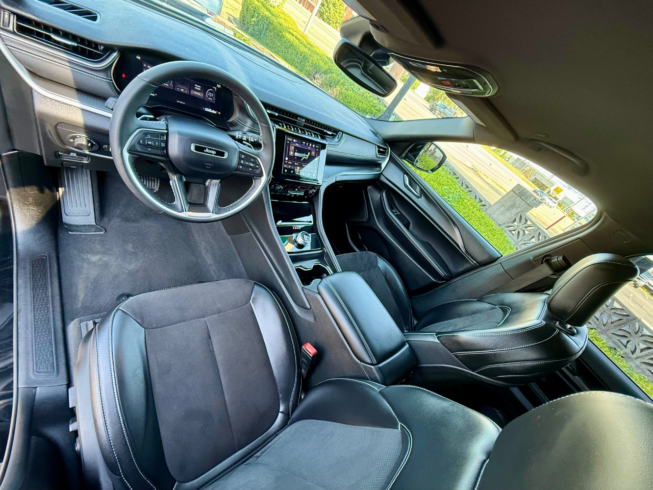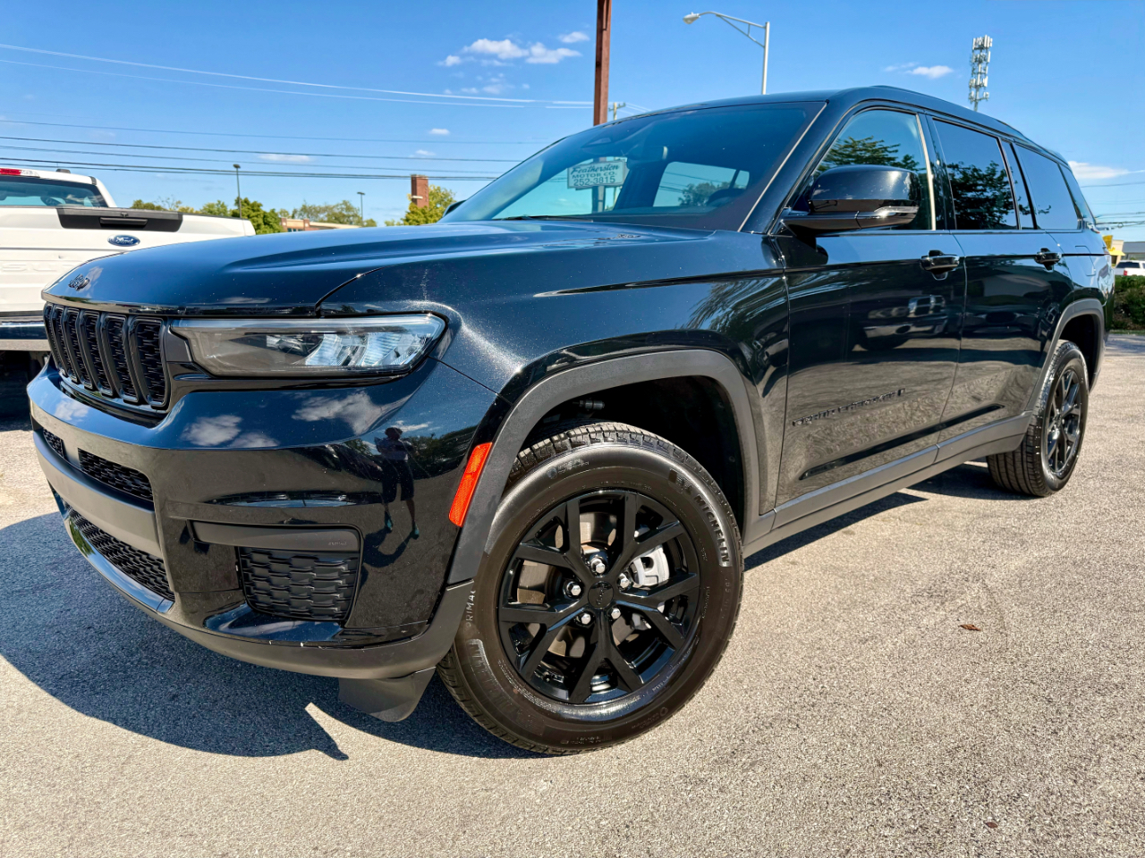 Get ready to hit the road in style with this sleek Diamond Black Crystal Pearl 2024 Jeep Grand Cherokee L Altitude 4X4! This one-owner, Clean Carfax certified beauty is ready to impress with its luxurious leather seats, heated front seats, and steering wheel mounted controls for added convenience. Whether you're tackling rough terrain or cruising through the city, the 4WD/AWD system will have you covered. With separate climate controls, everyone can ride in comfort, while the remote ignition and handsfree wireless capabilities keep you connected on the go. Keep an eye on your surroundings with the backup camera and enjoy the convenience of Bluetooth and satellite radio as you drive. The power tailgate, alloy wheels, and third-row seat are just the cherry on top of this feature-packed SUV. Don't miss out on the opportunity to own this fantastic Jeep Grand Cherokee L Altitude - come check it out today and see the Carfax report for yourself!