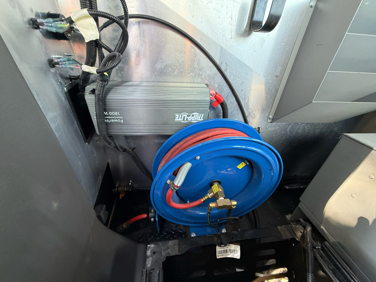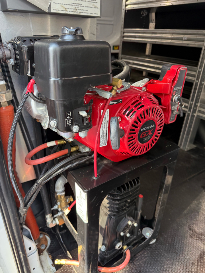 Professional installed inboard Air Compressor, retractable Air hose, metal shelves and cabinets . Ready to work Introducing the 2022 Ford Transit 150 Low Roof - the ultimate commercial vehicle for all your business needs. This spacious and versatile van is perfect for Starting Your Own Mobile Business with its Honda GX 390 compressor, Rear Shelving, numerus electrical outlets, built in Inverter and advanced navigation, this van has everything you need.