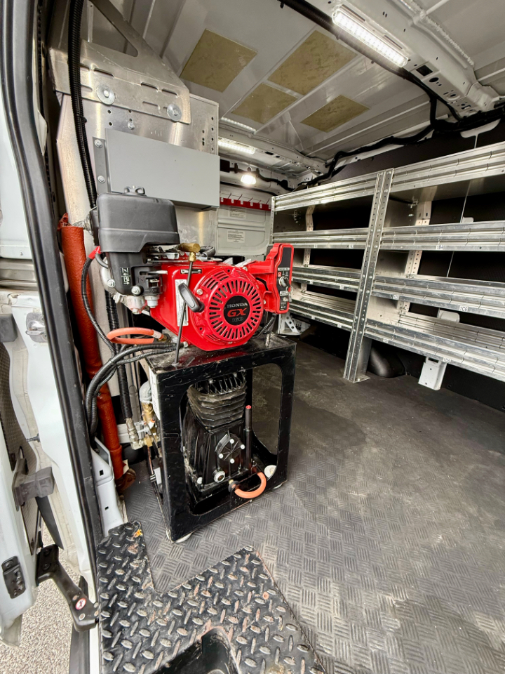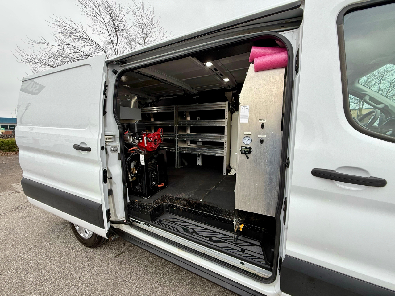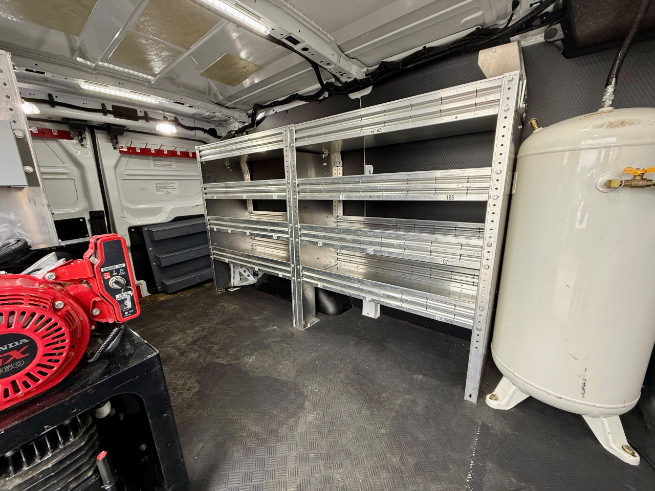 Professional installed inboard Air Compressor, retractable Air hose, metal shelves and cabinets . Ready to work Introducing the 2020 Ford Transit 150 Low Roof - the ultimate commercial vehicle for all your business needs. This spacious and versatile van is perfect for Starting Your Own Mobile Business with its Honda GX 390 compressor, Rear Shelving, numerus electrical outlets, built in Inverter, this van has everything you need.